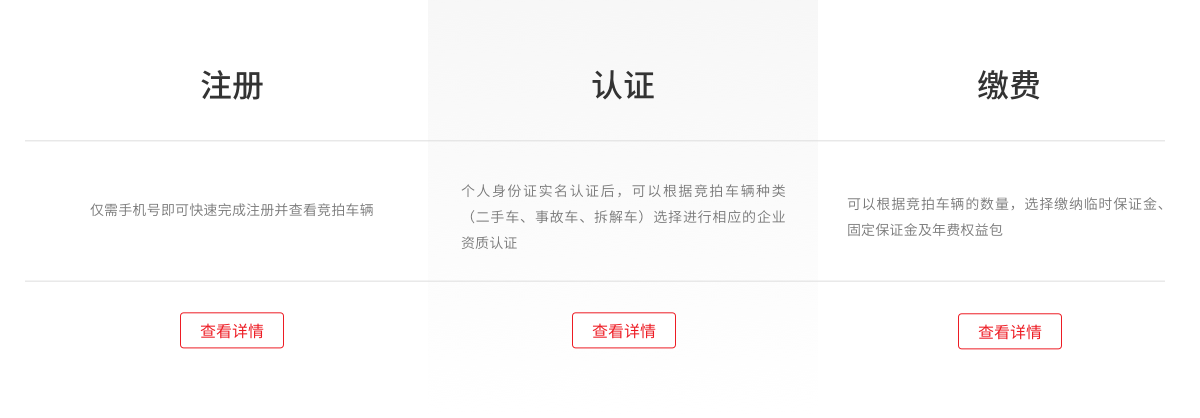 简单三步即可成为博车网买家,参与博车网平台车辆竞拍。