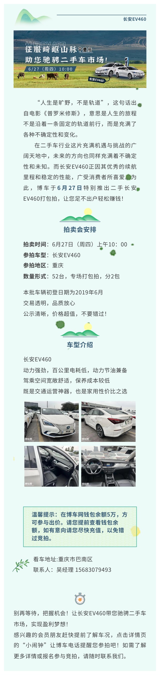 6/27专场打包拍|长安EV460:征服崎岖山脉,助您驰骋二手车市场!