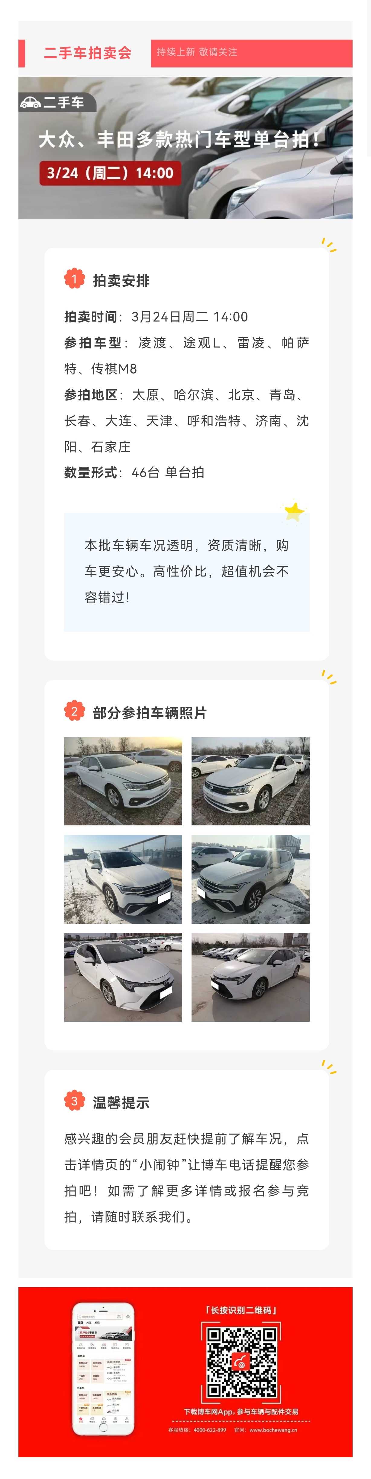 3/24周二,大众、丰田等多款热门车型单台拍!