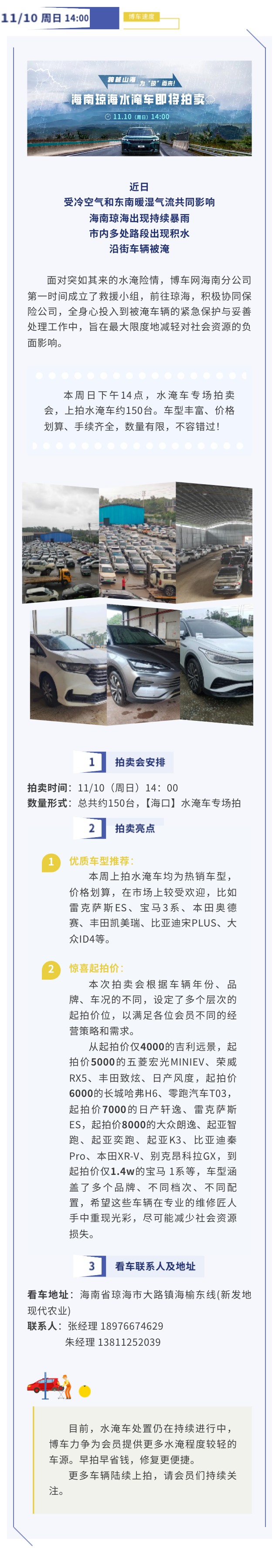 跨越山海,为“琼”而来!150台水淹车即将上拍